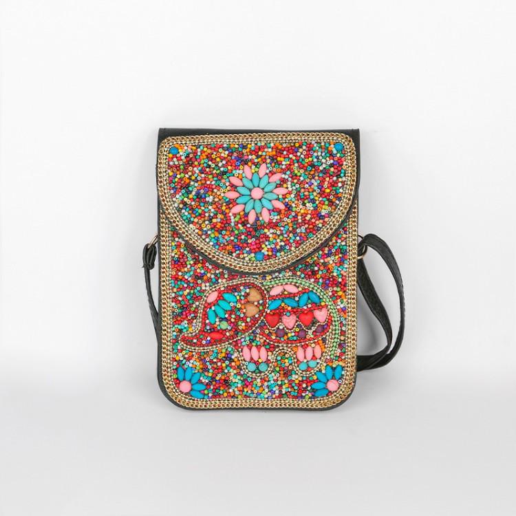 Xinjiang Etnische Stijl Vintage Zaadkraal Crossbody Tas voor Mobiele Telefoons