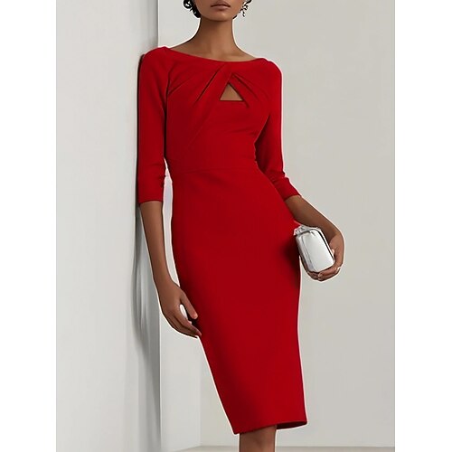 Per donna Abito Midi Abito aderente Abiti semi formali Ufficio Taglia piccola Semplice Manica 3/4 Girocollo Blu Rosa Rosso Viola Estate Primavera Autunno