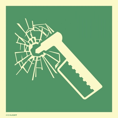 Aufkleber Nothammer, ISO 7010, Folie, langnachleuchtend, 160-mcd, 100x100 mm