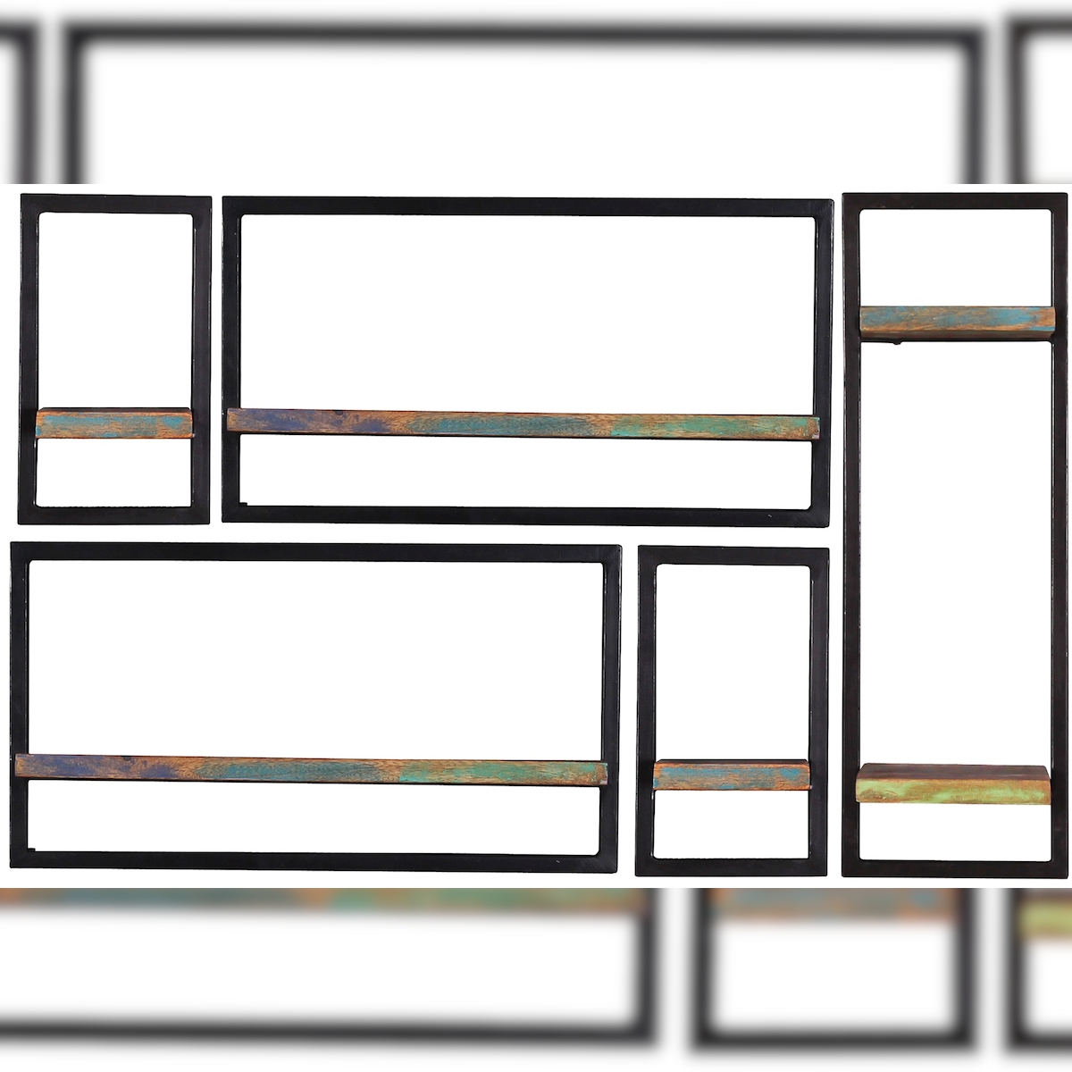 SIT Möbel Wand-Regal-Set | 5-tlg. | Böden Altholz lackiert bunt | Rahmen Metall schwarz | B 120 x T 25 x H 75 cm | 09101-04 | Serie RIVERBOAT