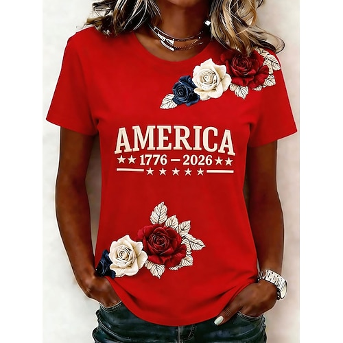 Giorno dell'Indipendenza Americana Per donna Maglietta Stampato Grafico Bandiera Lettera Elegante Classico Casual Manica Corta Girocollo Top Regolari Quotidiano Blu Bianco Rosso Azzurro cielo Estate