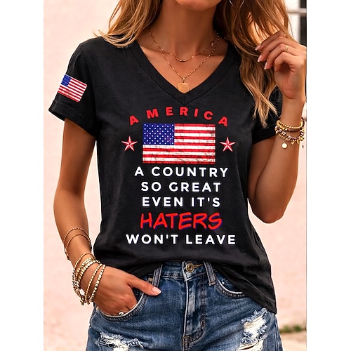 Giorno dell'Indipendenza Americana Per donna Maglietta Stampato Grafico Bandiera Vintage Elegante Classico Manica Corta Scollo a V Top Regolari Quotidiano Nero Estate Primavera