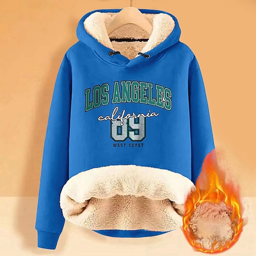 Per donna Pigiama felpato foderato in pile Felpa con cappuccio Lettera Streetwear Casual Manica Lunga Con Cappuccio Top Regolari Streetwear Ferie Uscire Stampato Blu denim Blu marino Blu Blu scuro
