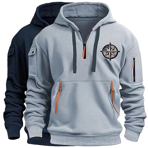 Per uomo Felpa con cappuccio Felpa con cappuccio e zip corta Felpa con cappuccio in pile Felpa con cappuccio tattica Bianco kaki Blu navy bianco Grigio scuro grigio chiaro Blu navy grigio