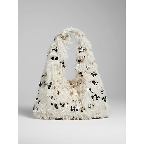 borsa da donna in pelliccia sintetica con paillettes: design scintillante e luccicante con materiale morbido, disponibile in due misure, perfetta per feste serali e occasioni speciali