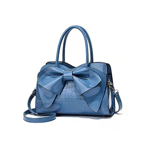borsa da donna in similpelle con dettaglio fiocco – motivo coccodrillo, vari colori, tracolla regolabile, stili di trasporto versatili per occasioni casual e formali
