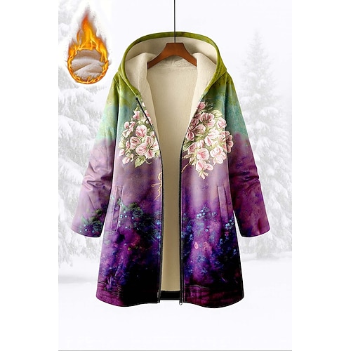 Felpe con cappuccio per donna con zip foderate in pile grafiche floreali geometriche eleganti calde attive a maniche lunghe normali cappuccio top lunghi da casa lavoro quotidiano patchwork stampa