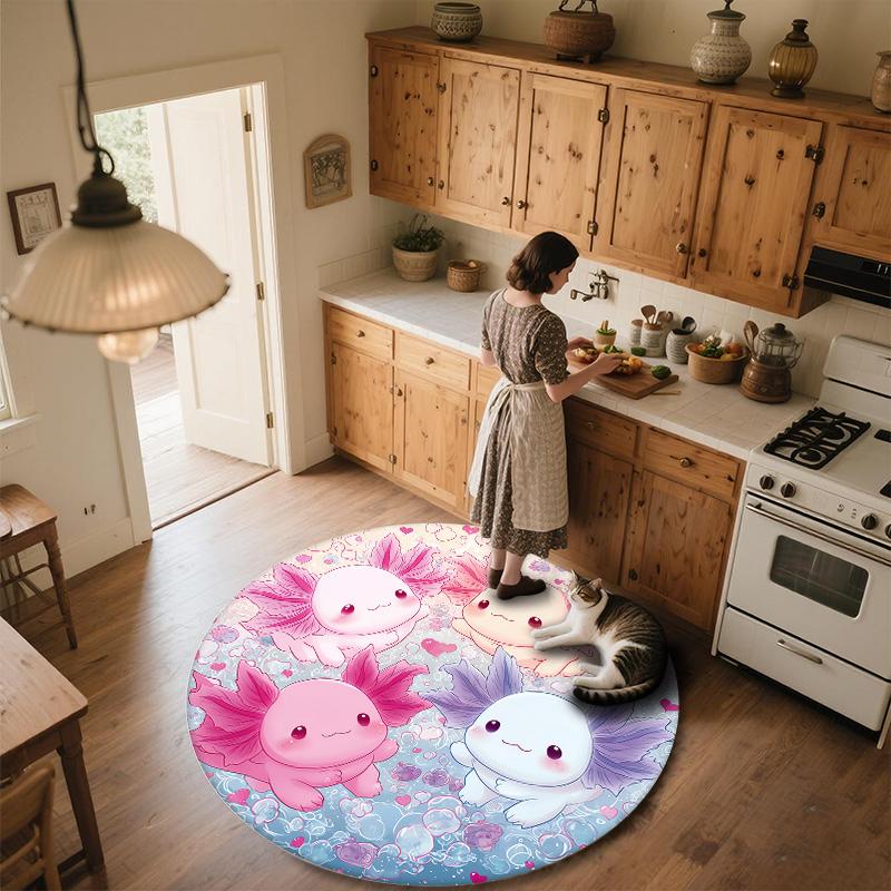 Axolotl and Chameleon Round Area Rug,Carpet Rug for Living Room Bedroom Sofa Playroom Decor,Non-slip Floor Mat