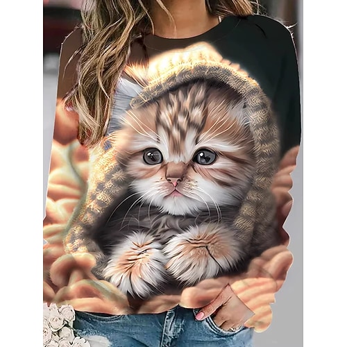 Per donna Felpa Pullover Felpe con cappuccio Animale Gatto Cane Moda Casual Manica Lunga Girocollo Top Regolari Casuale Streetwear Abbigliamento Quotidiano Stampato Rosa Marrone Grigio chiaro