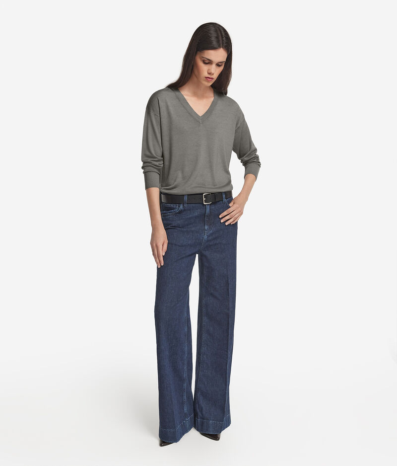 Falconeri Maglia con scollo a V e spacchi in Cashmere Ultrafine Donna Salvia Tinto Capo Taglia S