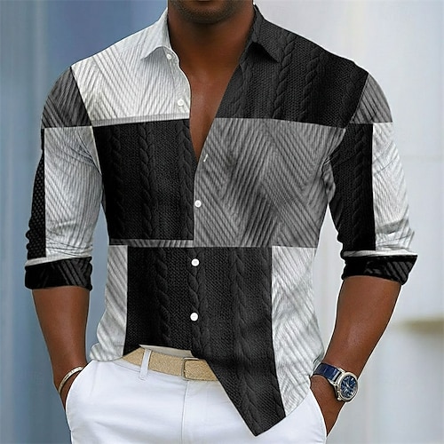 Per uomo Camicia Camicia casual Camicia con Bottoni Nero Bianco Blu scuro Azzurro Manica Lunga Blocco di colori Bavero Vacanza Quotidiano Patchwork Abbigliamento Moda Casual Confortevole