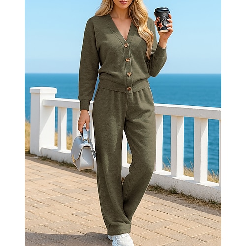 Per donna Cardigan lavorato a maglia Abiti da salotto Tinta unita Completo Abbigliamento Autunno Nero Blu Lavoro All'aperto Viaggio Leggero Di tendenza Manica Lunga Sport Abbigliamento sportivo