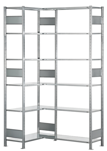 PROREGAL Eckregal | Grundregal (Felder A+B) | HxBxT 200x100x30cm | 2x5 Ebenen | Längenriegel | Lichtgrau