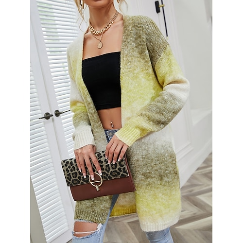 Per donna Felpa Cardigan Elegante Moda Streetwear Gradiente di Colore Aperto davanti Tasca Lavorato a maglia Stampato Manica Lunga Top Regolari Maglia All'aperto Quotidiano Weekend Giallo Rosa