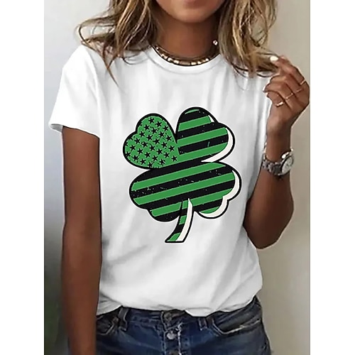 Giorno di San Patrizio Festa di San Patrizio Per donna Maglietta Trifoglio Moda Manica Corta Scollo a V Top Regolari Casuale Giorno di San Patrizio Stampato Verde primavera Verde chiaro Verde