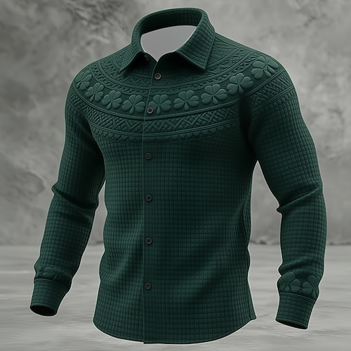 Festa di San Patrizio Per uomo Trifoglio Arte celtica Camicia Camicia a nido d'ape Camicia casual Manica Lunga Vintage Retrò Ferie Estate Primavera Collo ripiegato Stampa 3D Testurizzato Camicie con