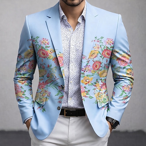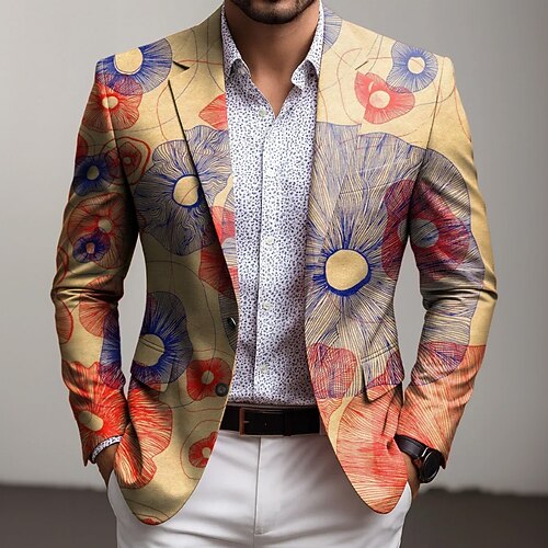 Per uomo Floreale Giacca blazer Cappotto Confortevole Traspirante Artistico Casual Casuale Quotidiano Abbigliamento da sera Stampa 3D Bottoni Multi-tasche Primavera Autunno Inverno Dentellato