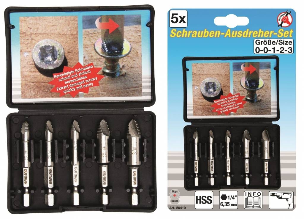 Kraftmann 50410 Schrauben-Ausdreher-Set 5tlg HSS für beschädigte Schraubenköpfe