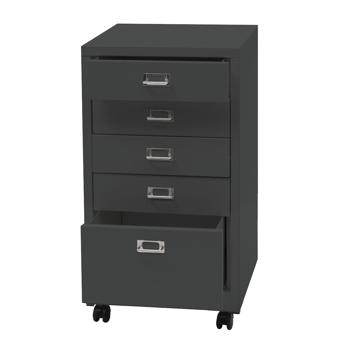 Mendler Rollcontainer HWC-L49, Schubladenschrank Stahlschrank Aktenschrank, Metall 75x40x41cm 5 Schubladen ~ dunkelgrau