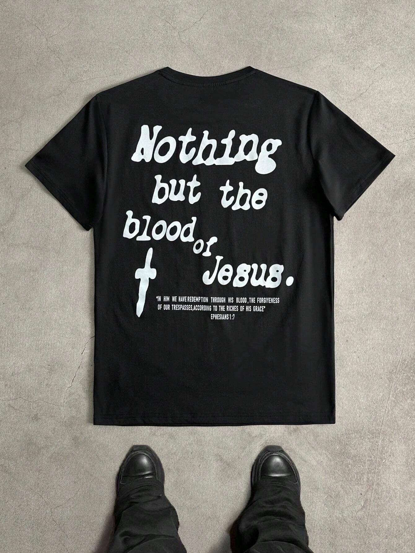 2025 Men's nothing but the blood of jesus 100% pure Cotton short-sleeved T-shirt with Harajuku pattern print cm