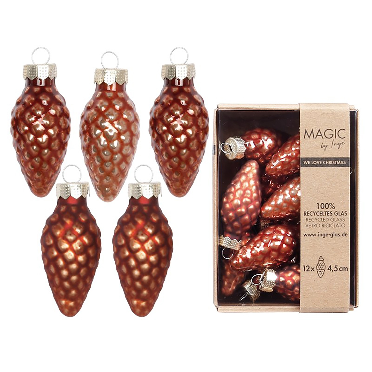 Inges Magic & Goodz 12 Christbaumschmuck Zapfen 4,5cm Glas Christbaumkugeln matt & glänzend kleine Weihnachtskugeln Weihnachten Weihnachtsbaumschmuck Deko Kupfer Braun