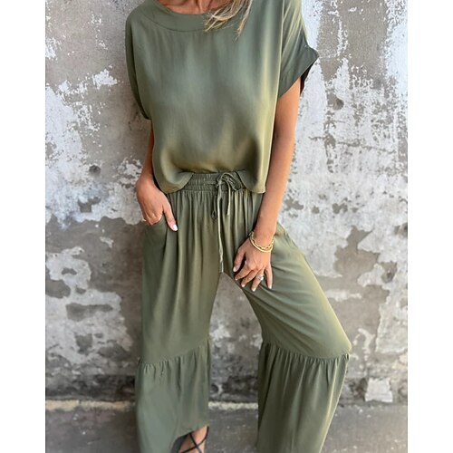 Per donna Moda Streetwear Maglietta Set di Pantaloni Bolero Top Manica Corta Girocollo Semplice Casuale Quotidiano All'aperto Nero Verde militare Arancione Estate Vestibilità regolare