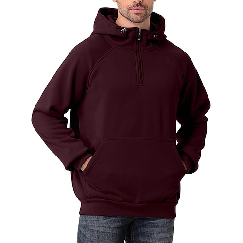Per uomo Felpa con cappuccio Maglione Felpa con cappuccio e zip corta Rosso bordeaux Nero Verde militare Blu marino Cachi Con Cappuccio Semplice Tasca Sport Outdoor Casuale Quotidiano Streetwear