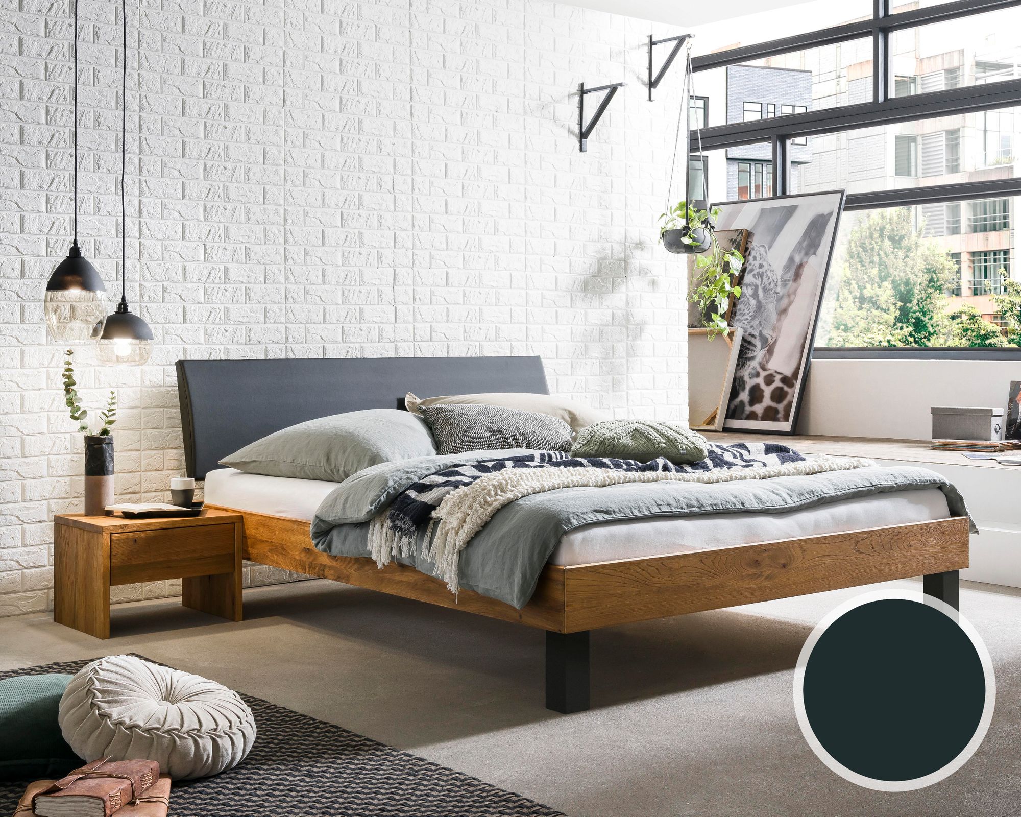 BlackWood »Nova Vita Contour I« Wildeiche Massivholzbett 200x200 cm / Wildeiche natur / Boucle Anthrazit