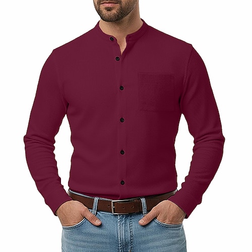 Per uomo Camicia Camicia a nido d'ape Tessuto Camicia casual Camicia con Bottoni Nero Bianco Borgogna Verde Kaki Manica Lunga Semplice Collo alla coreana Casuale Quotidiano Minimalista Abbigliamento