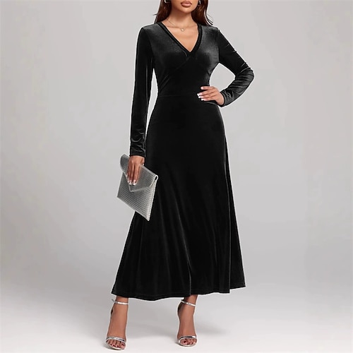 Per donna Abito Midi Abito in Velluto Abito da Cocktail Elegante Moda Moderno Quotidiano All'aperto Festa serale Vestibilità regolare Semplice Manica Lunga Scollo a V Blu Nero Vino Viola Primavera