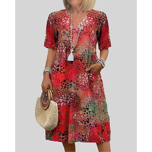 Per donna Abito Midi Abito Stampato Moda Moderno Vacanza Uscire Vestibilità regolare Grafico Manica Corta Scollo a V Blu Rosso Viola Cachi Primavera Autunno