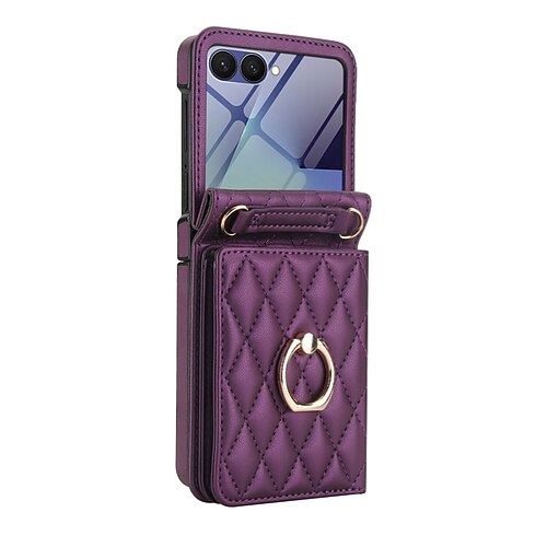 telefono Custodia Per Samsung Galaxy Z Flip 7 Z Flip 6 Z Flip 5 Z Flip 4 Z Flip 3 Copertura Posteriore Supporto ad anello con Cordino Con Cinturino da Polso Retrò TPU Pelle PU