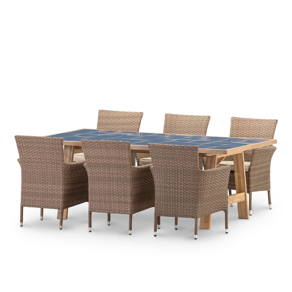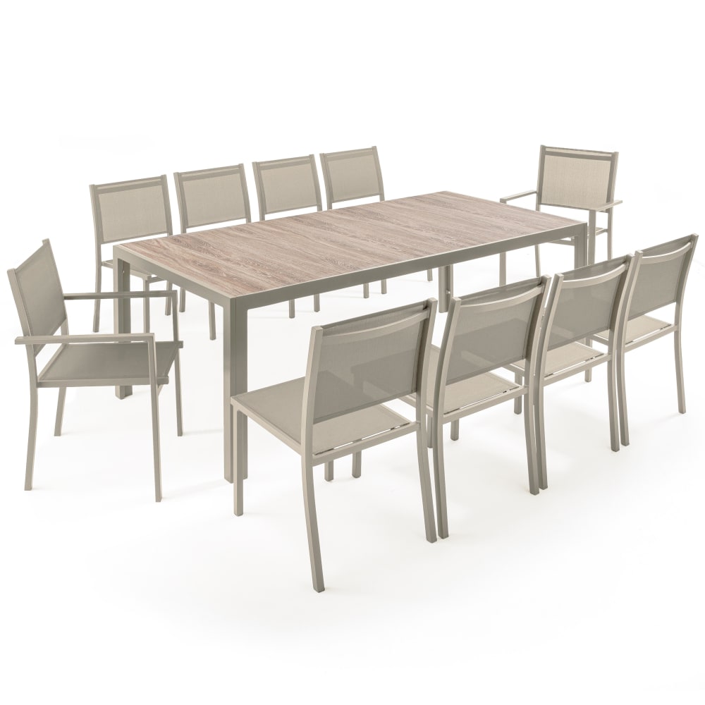 Tavolo da giardino in ceramica effetto legno 206 cm e 10 sedie crema