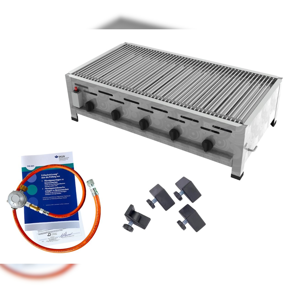 ChattenGlut Professional Gastrobräter 5-flammig Tischgerät 22,5kW und Einzelne Edelstahlstäbe als Rost