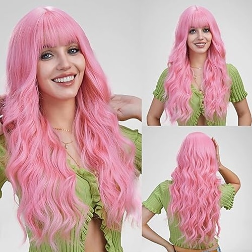 parrucca lunga con frangia parrucche ondulate per donne parrucca sintetica per uso quotidiano alle feste