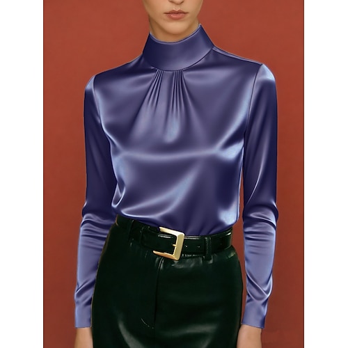 Per donna Camicia Camicia in raso Blusa Maglie a manica lunga Arricciato Tinta unica Elegante Essenziale Classico Manica Lunga Collo Alto Top Regolari Quotidiano Ferie Uscire Nero Bianco Viola Cachi