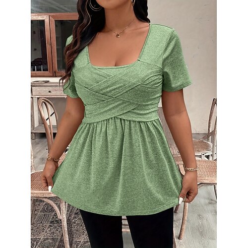 Per donna Maglietta Semplice Moda Elegante Classico Manica Corta Collo quadrato Top Regolari Quotidiano Uscire Weekend Nero Verde chiaro Vino Viola chiaro Marrone Estate Primavera