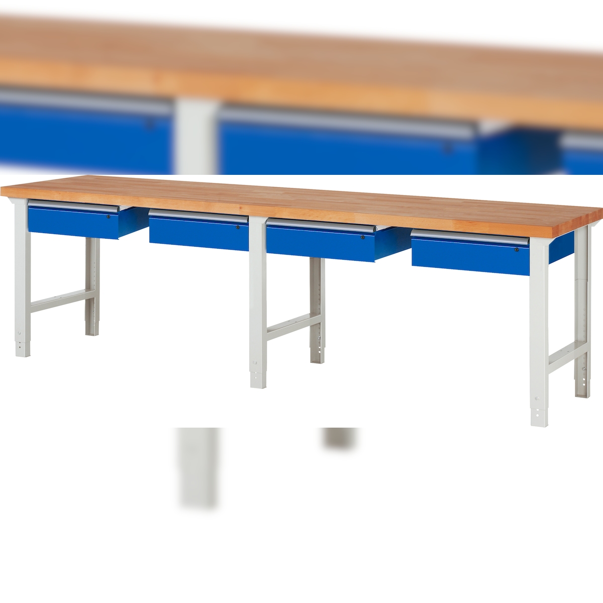 Werkbank, Baukastensystem Serie 7000, 4 Schubladen, 2 Türen, BxT 2500 x 900 mm eurokraft pro