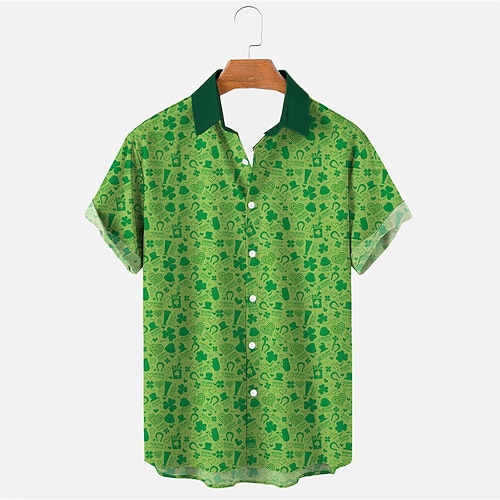 festa di san patrizio quadrifoglio camicia casual da uomo abbigliamento quotidiano per uscire nel fine settimana estate couverture maniche corte verde scuro, verde s, m, l camicia in tessuto