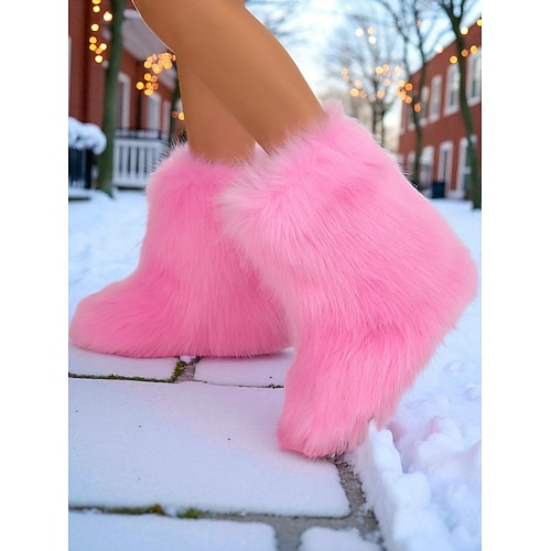 stivali alti fino al ginocchio in pelliccia sintetica marrone da donna con suola spessa – soffici stivali invernali da festival per donne, perfetti per l'abbigliamento da neve all'aperto e per la moda delle vacanze