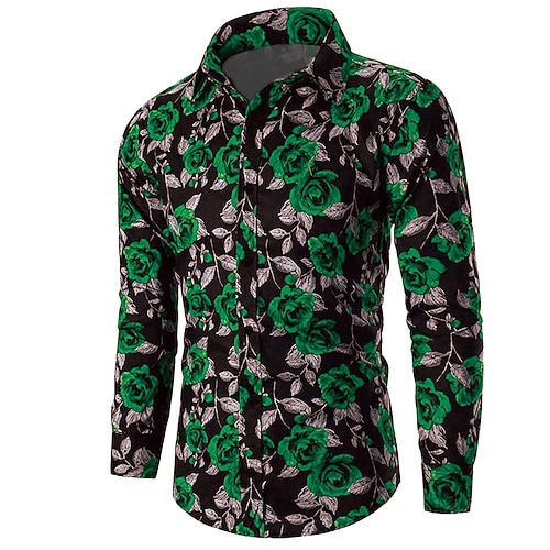 San Valentino Per uomo Rosa Floreale Camicia Camicia con bottoni Manica lunga Informale Da mare Casual / quotidiano Fine settimana Primavera estate Autunno inverno Collo ripiegabile Stampa Bottone giù