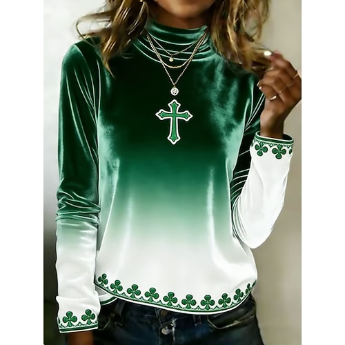 Tunic Tee da donna per il giorno di San Patrizio Grafica Quadrifoglio Elegante Vintage Moda Maniche Lunghe Collo Alto Top Regolari Quotidiani Uscita Fine Settimana Stampa Verde Primavera Inverno