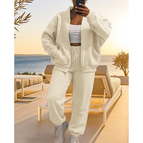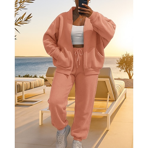 Per donna Tuta da 2 pezzi Set di tute da ginnastica Abbigliamento sportivo Con zip Baggy Tinta unita Completo Abbigliamento Autunno Nero Rosa Lavoro All'aperto Viaggio Leggero Di tendenza Manica Lunga