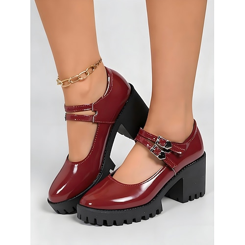 décolleté Mary Jane con plateau in vernice bordeaux da donna – scarpe con tacco grosso e fibbia in stile gotico per feste di Halloween e costumi da cosplay