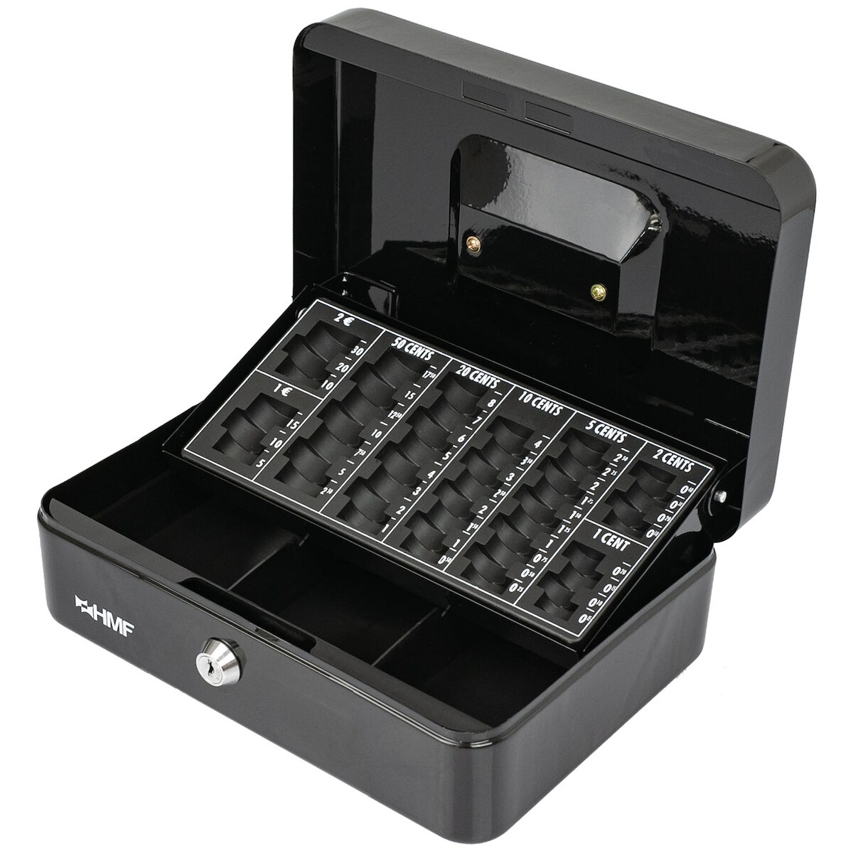 HMF Geldkassette abschließbar, Kasse mit Euro Münzzählbrett, 3 Banknotenfächer, 25 x 18 x 9 cm, Schwarz
