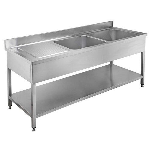 VM Europa Edelstahl Spültisch 2 Becken rechts, mit Grundboden, mit Aufkantung, Eco - zur selbstmontage: 200 x 70 cm / mit Aufkantung / selbstmontage
