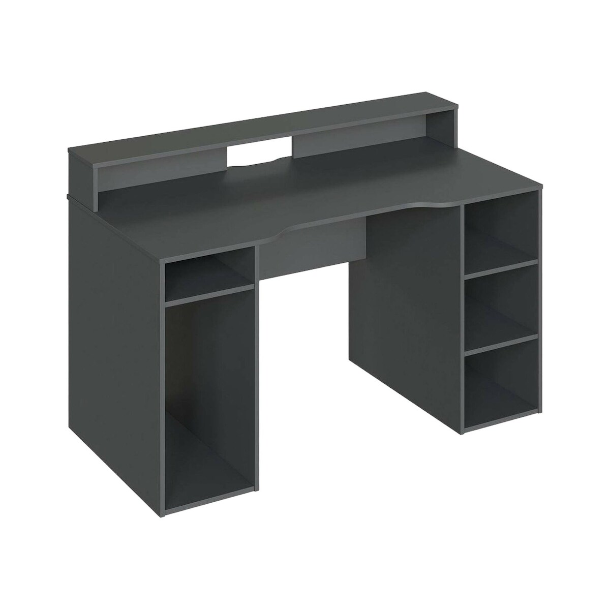 Dmora Schreibtisch Phoenix, Moderner Schreibtisch von Gaming, Studiertisch für PC und CD-Halter, Studiertisch mit Regalen, 136x67h88 cm, Anthrazit