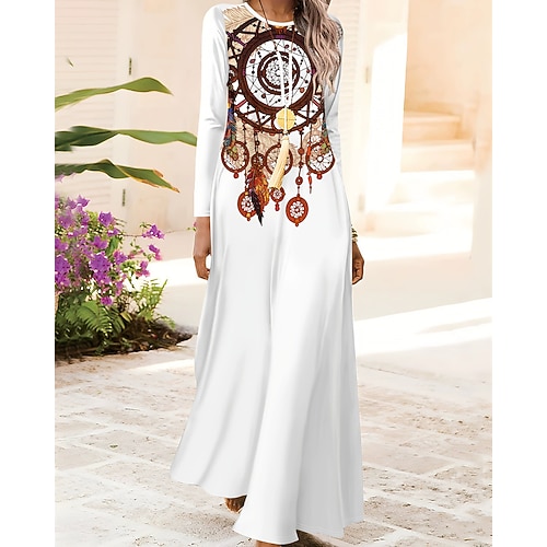 Per donna Abito Lungo Maxi Abito Vestito Casual Abito Stampato Elegante Moda Moderno Quotidiano All'aperto Spiaggia Vestibilità regolare Grafico Manica Lunga Girocollo Blu Rosso Arancione Marrone