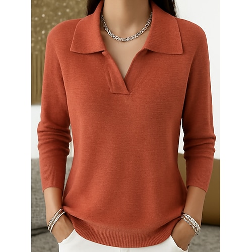 Per donna Felpa Elegante Quotidiano Colletto Polo Lavorato a maglia Manica Lunga Top Regolari Maglia Quotidiano Weekend Nero Bianco Primavera Autunno