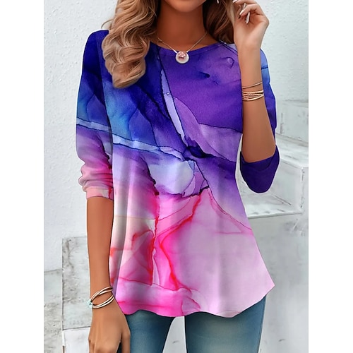 Per donna Maglietta Grafico Astratto Vintage Moda Elegante Manica Lunga Girocollo Top Regolari Quotidiano Weekend Stampato Rosa Viola Estate Primavera Autunno